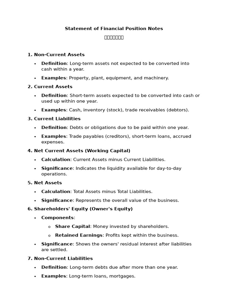 Financial Position Notes | PDF | Balance Sheet | Finance & Money Management