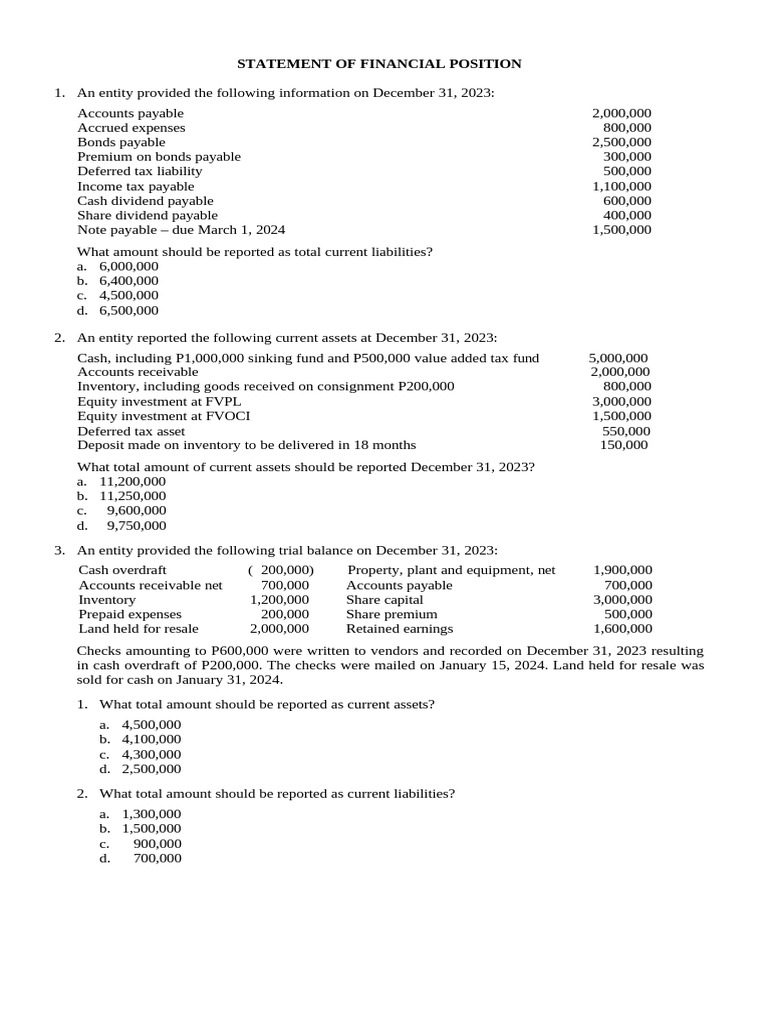 Week 1 - FAR - Statement of Financial Position | PDF | Balance Sheet ...