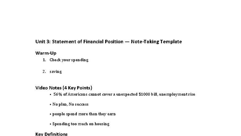Unit 3: Statement of Financial Position Notetaking Template - Studocu