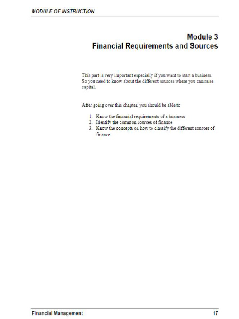 Week 3 Financial Requirements and Sources | PDF