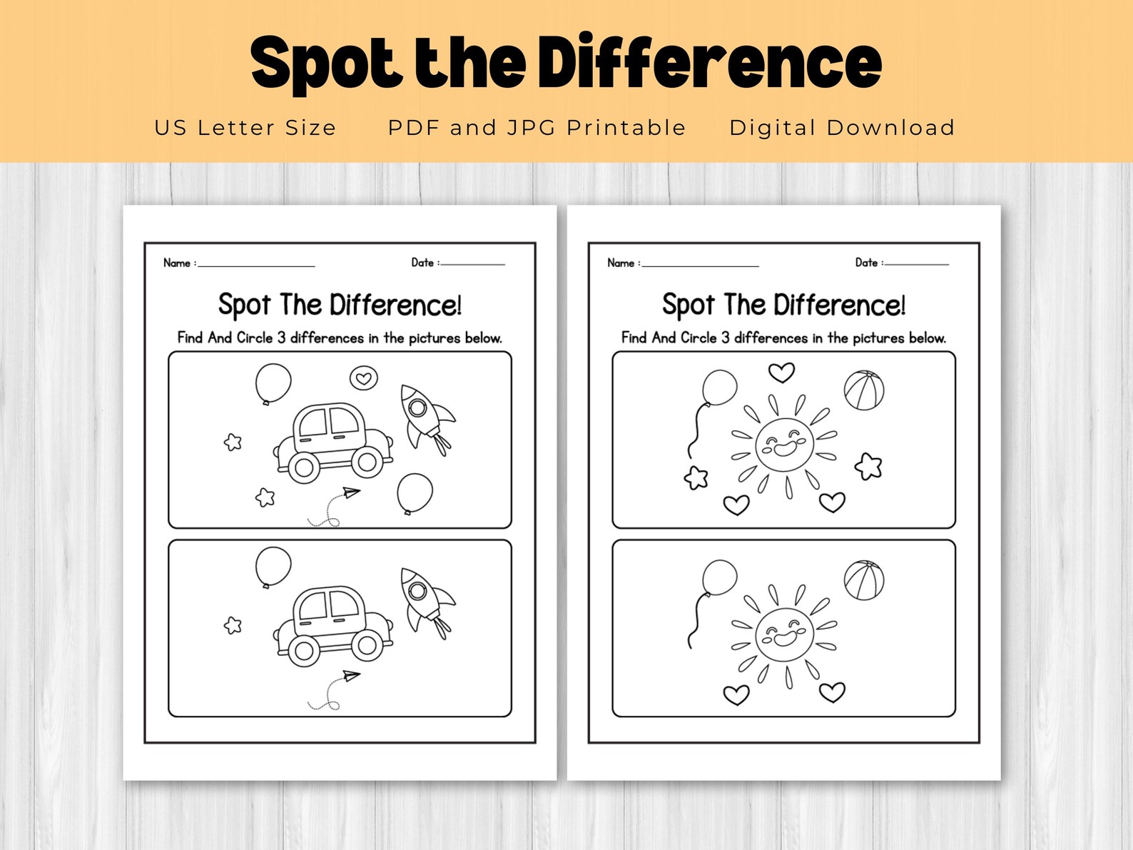 Spot the Difference Digital Worksheets for Kids, Fun Activity for ...