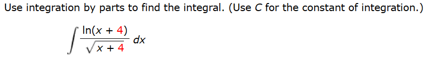 Solved Use integration by parts to find the integral. (Use C | Chegg.com