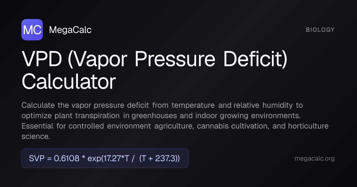 VPD (Vapor Pressure Deficit) Calculator — Free Online with Formula ...