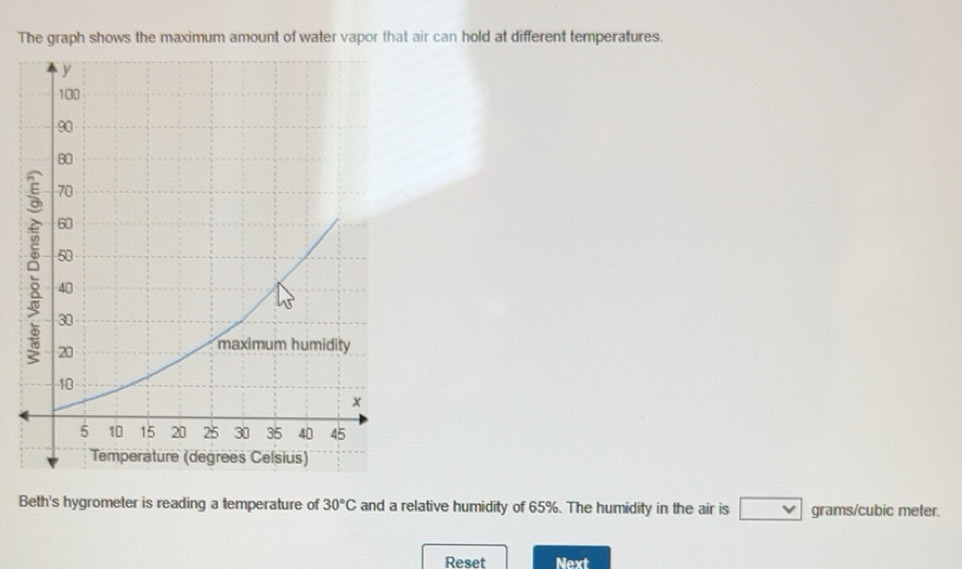 Solved: The graph shows the maximum amount of water vapor that air can ...