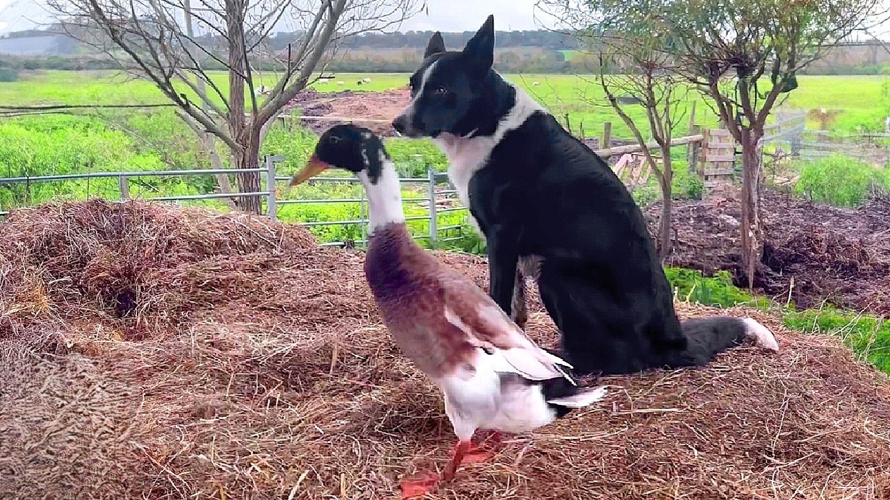 Dog finds lifelong friend in bossy duck - now they rule the farm together