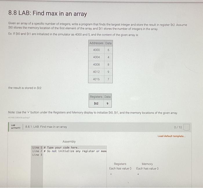 Solved 8.8 LAB: Find max in an array Given an array of a | Chegg.com