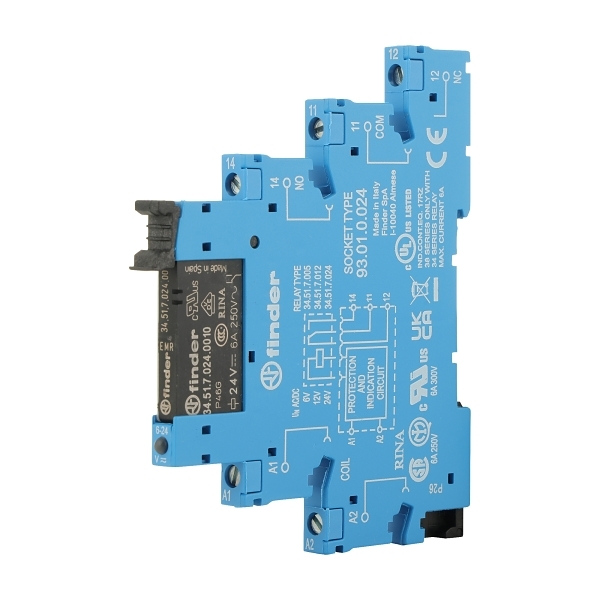 Finder 38.51.7.024.0050 FINDER 6A 1 POLE 24V DC RELAY INTERFACE MODULE ...