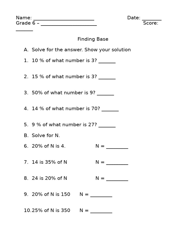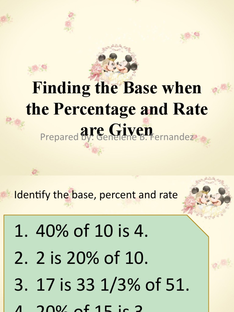 Math 5 Define Percentage, Rate and Base - Identify the Base, Percentage ...