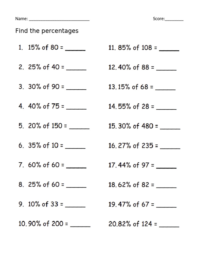 Percentage, Bas… | Free Interactive Worksheets | 1952528