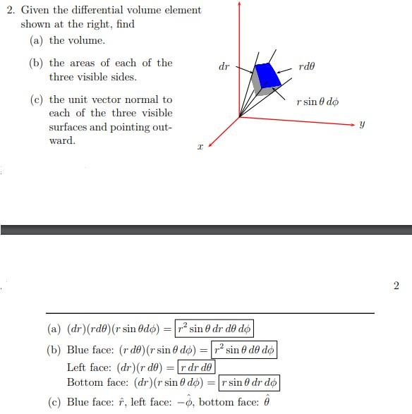 Solved 2. Given the differential volume element shown below, | Chegg.com