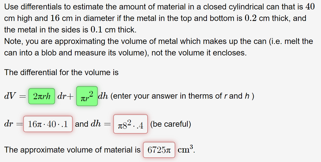 Solved Using differentials, find the increase in volume if | Chegg.com
