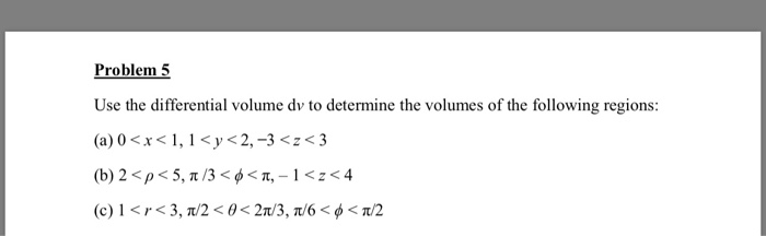 Solved Problem 5 Use the differential volume dy to determine | Chegg.com