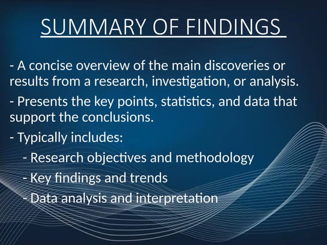 SUMMARY OF FINDings report in powerpoint presentation | PPTX