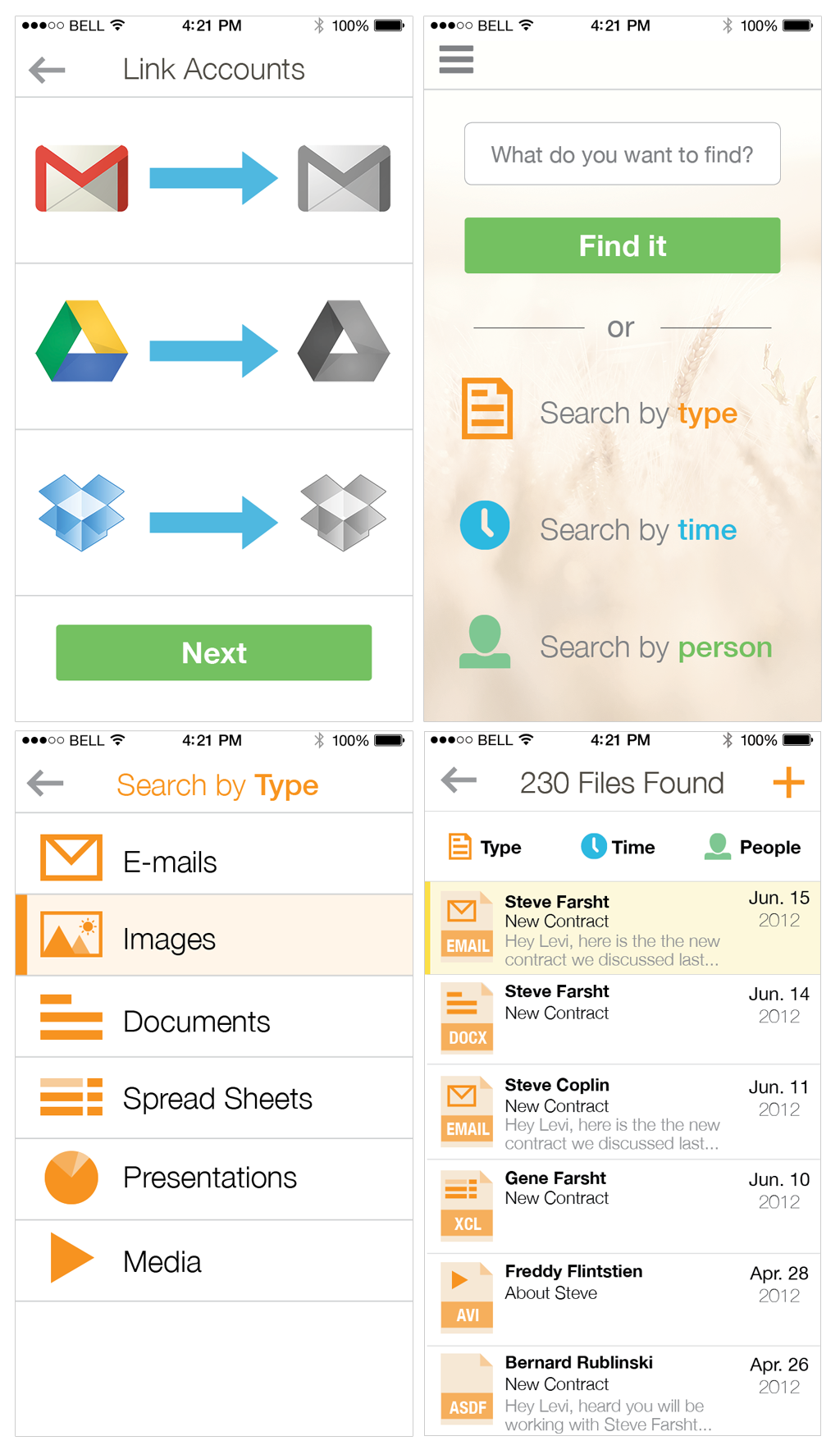 FindIt: search Gmail, Google Drive, Dropbox from one app