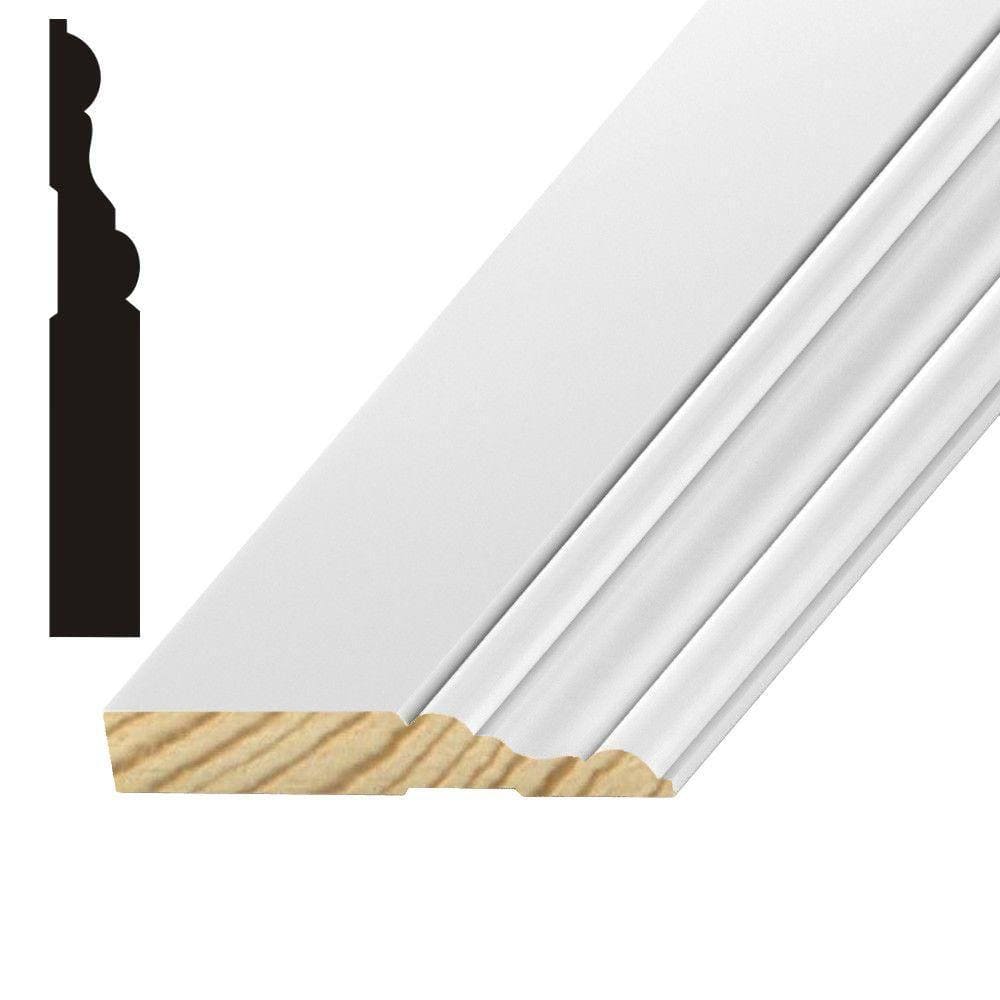 Finger Jointed Primed Pine Colonial Baseboard 3/8" x 4 1/8" x 16' at ...