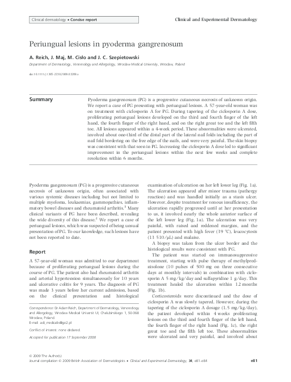(PDF) Periungual lesions in pyoderma gangrenosum