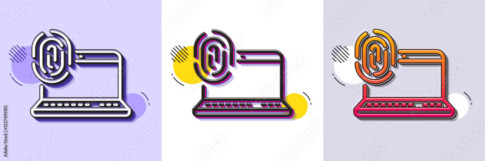 Computer fingerprint line icon. Halftone dotted pattern. Gradient icon ...
