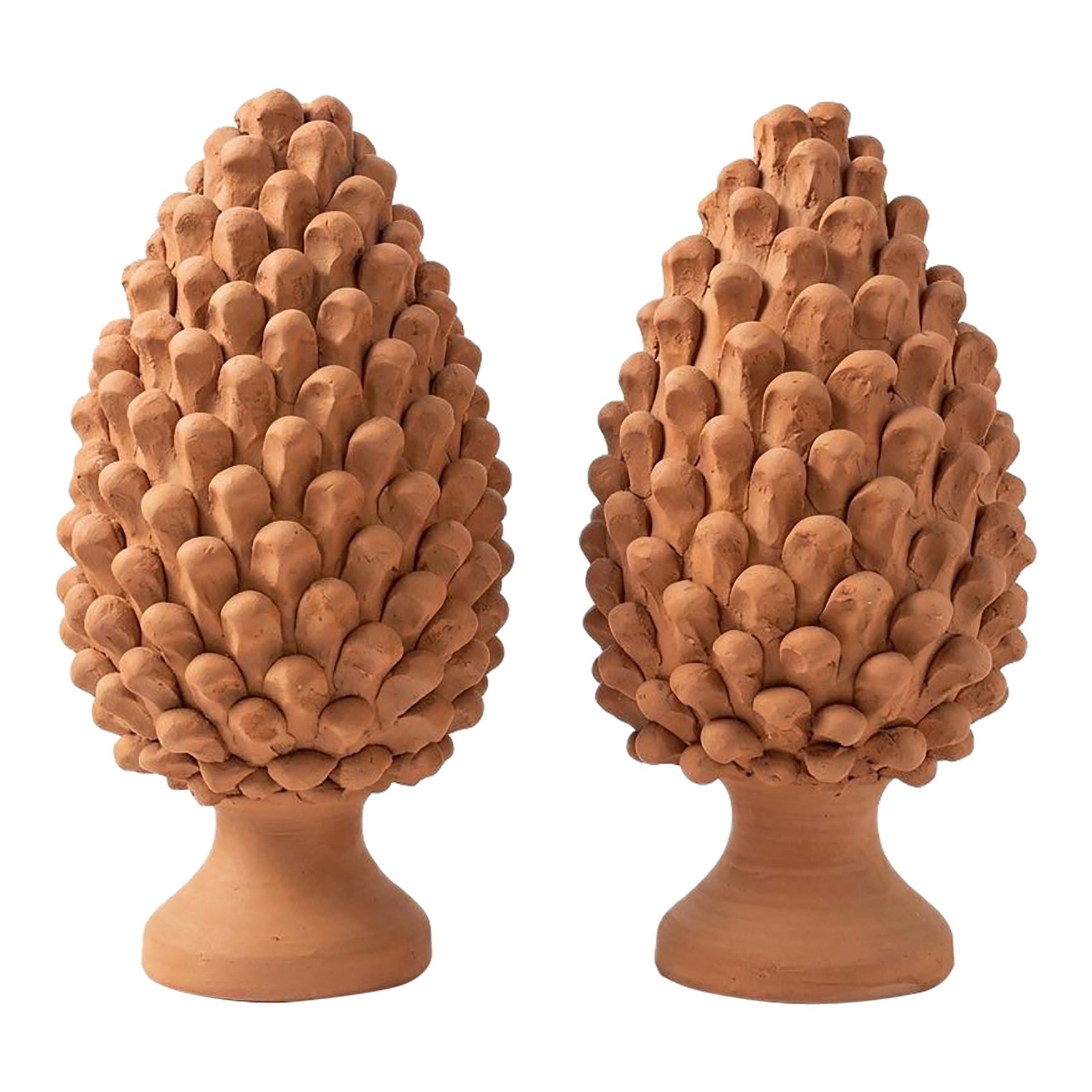 Pair of Hand-Finished Terracotta Pine Cone Finials | Chairish