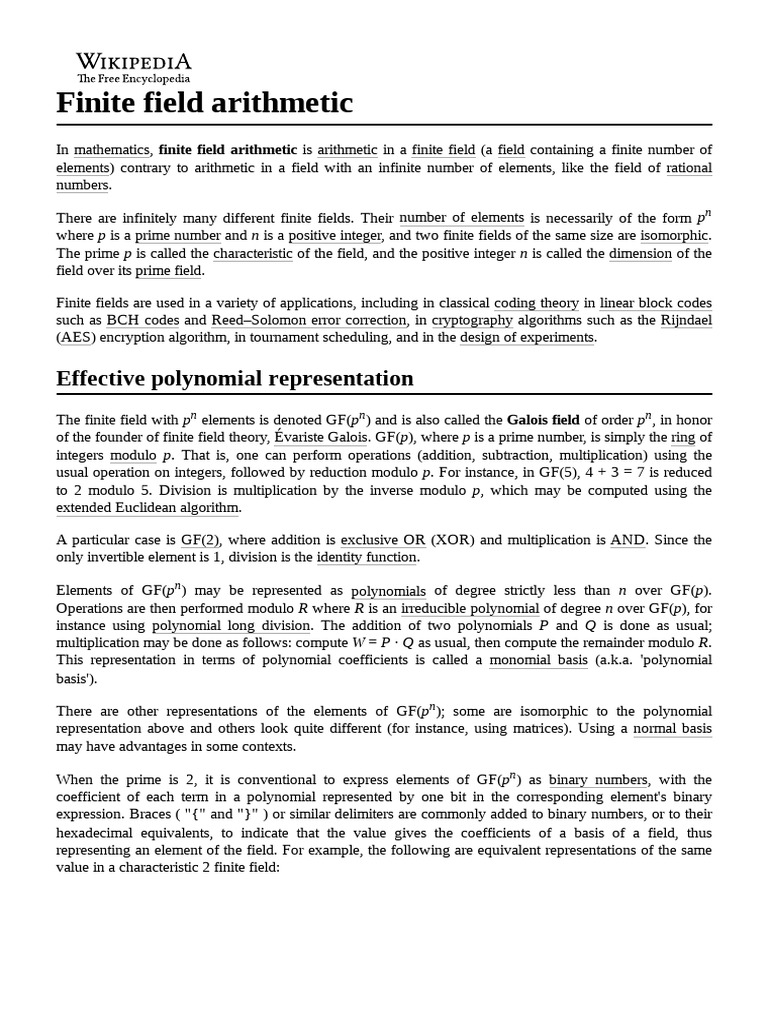 Finite Field Arithmetic Explained | PDF | Field (Mathematics) | Mathematics