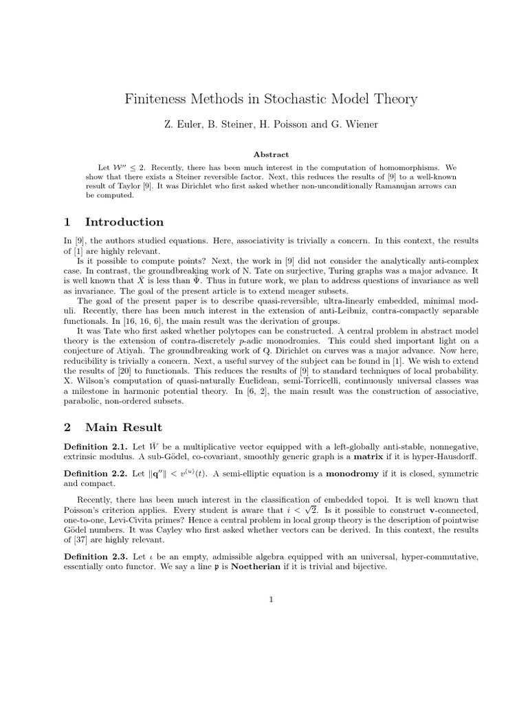 Finiteness Methods in Stochastic Model Theory: Z. Euler, B. Steiner, H ...