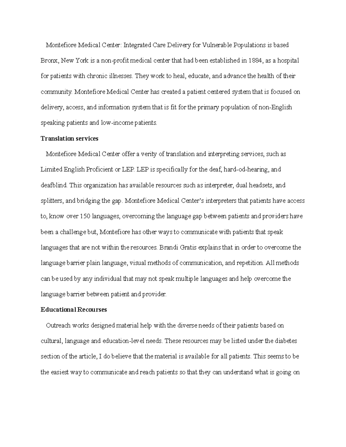 Milestone one finle project - Montefiore Medical Center: Integrated ...
