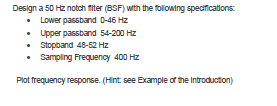 Design a 50 Hz notch iter (BSF) with the following | Chegg.com
