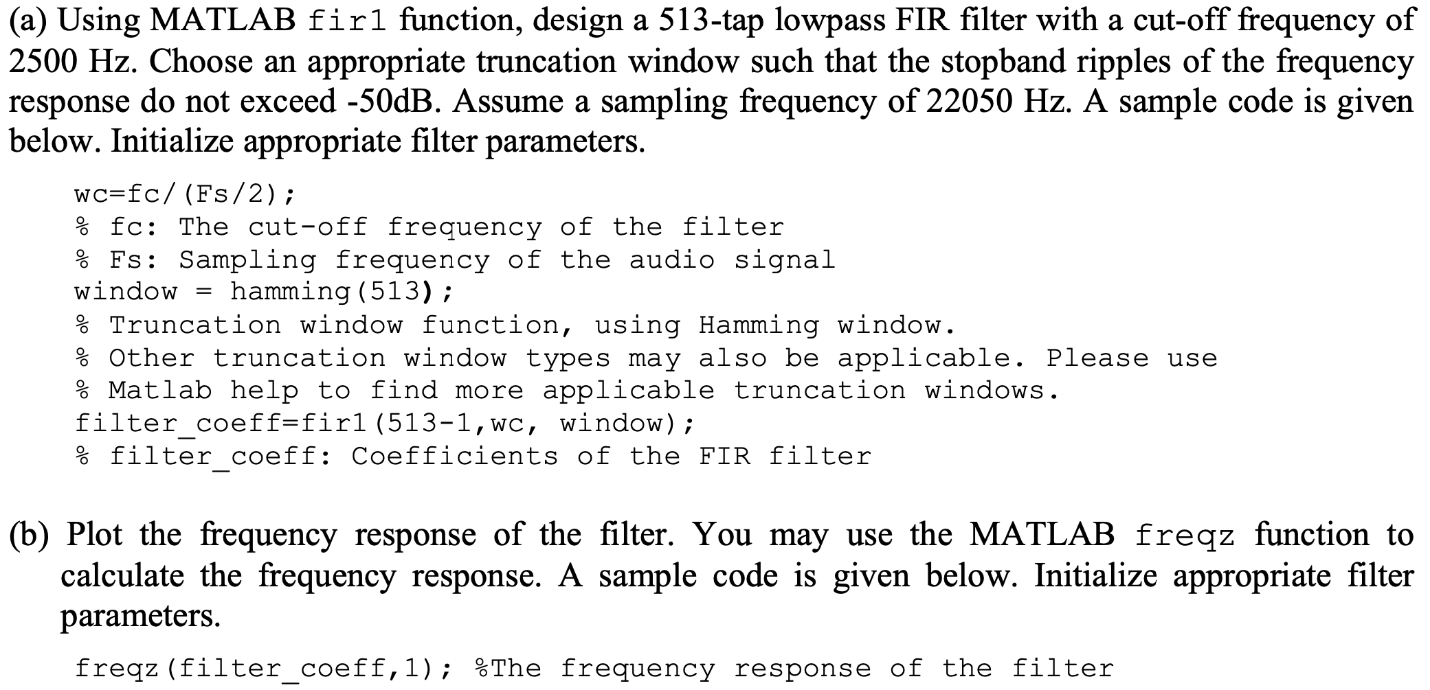 (a) Using MATLAB fir1 function, design a 513-tap | Chegg.com