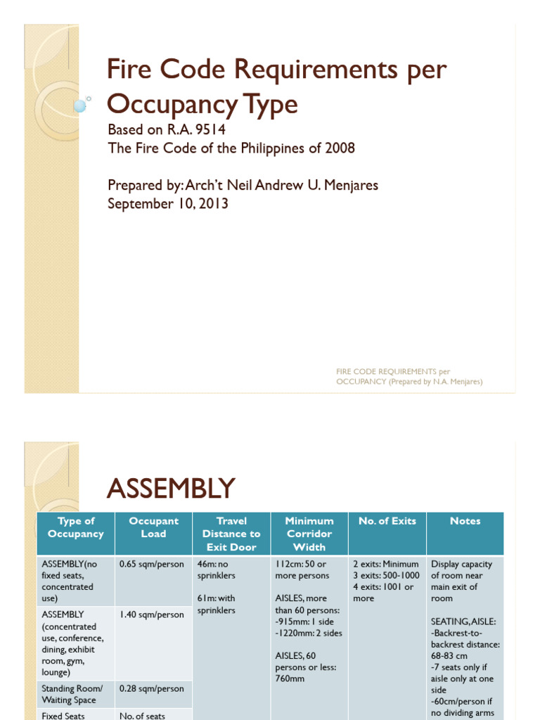Fire Code Requirements For Occupancy Types | PDF