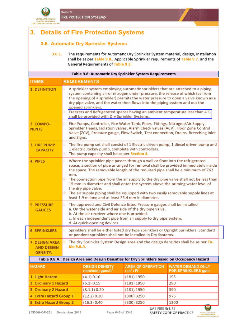 UAE Fire Code - Dry Pipe Systems | PDF