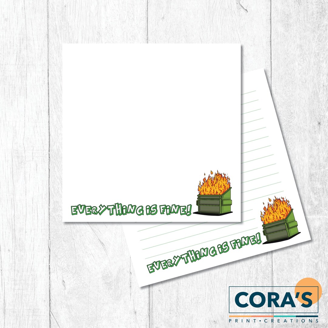 Dumpster Fire "everything is Fine" Notepad - Etsy
