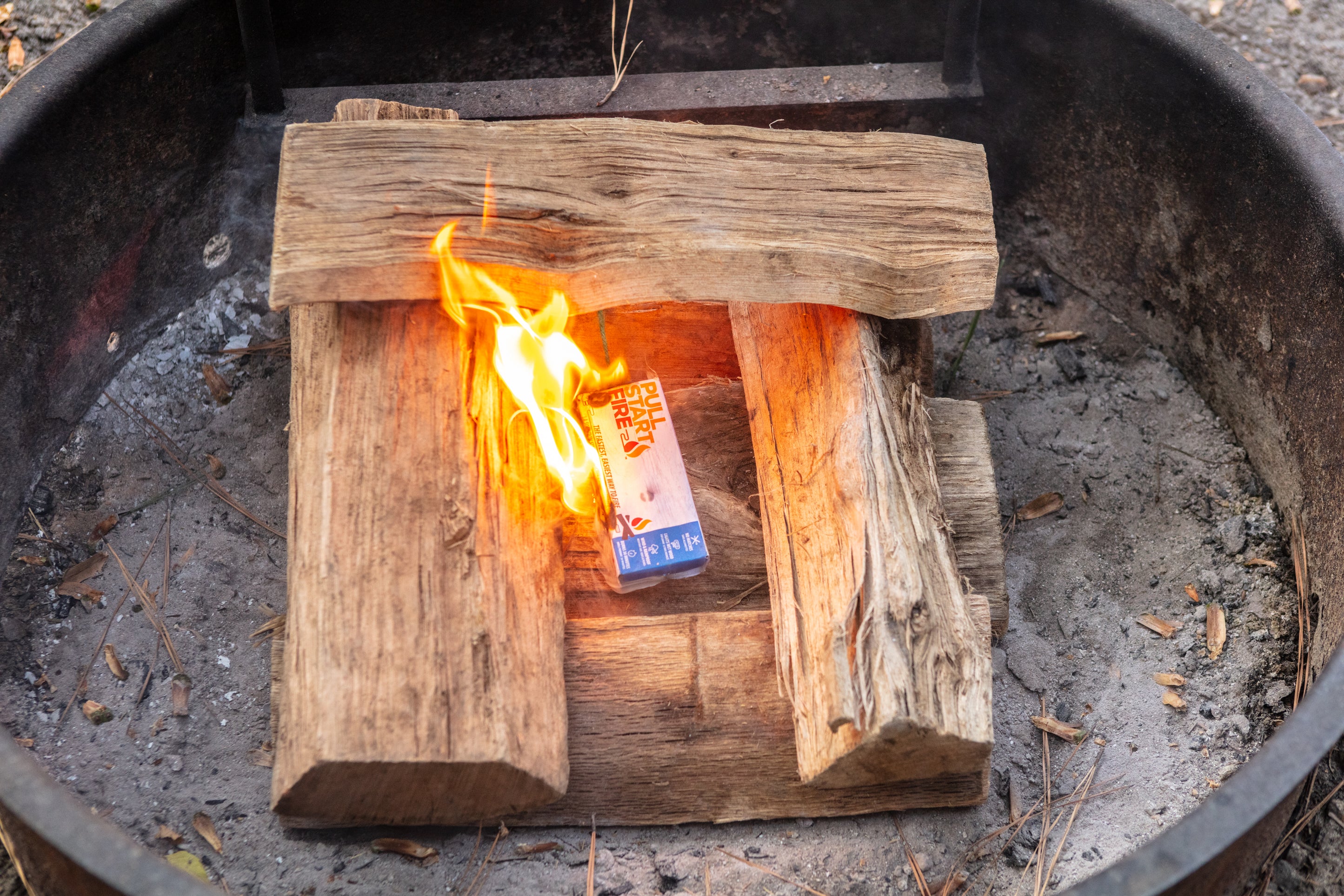 Pull Start Fire Instantly Lights Campfires, Even On Damp Firewood