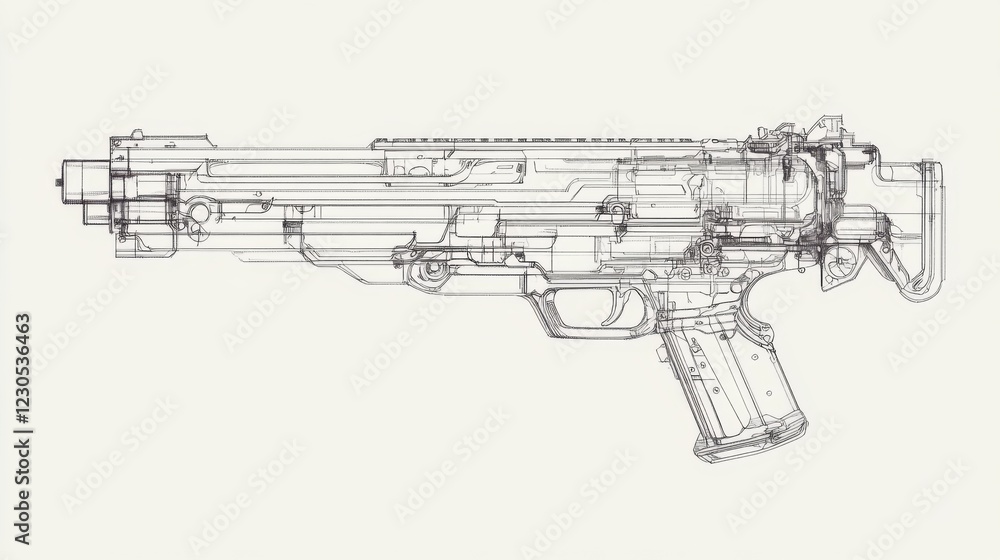 Ilustración de Stock Exploded view diagram of a futuristic firearm ...