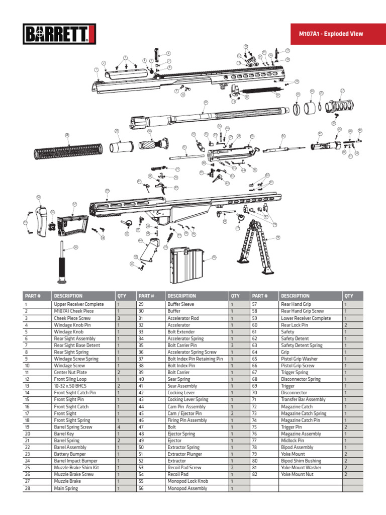 M107A1 Exploded View Parts List | PDF | Firearm Components | Ballistics