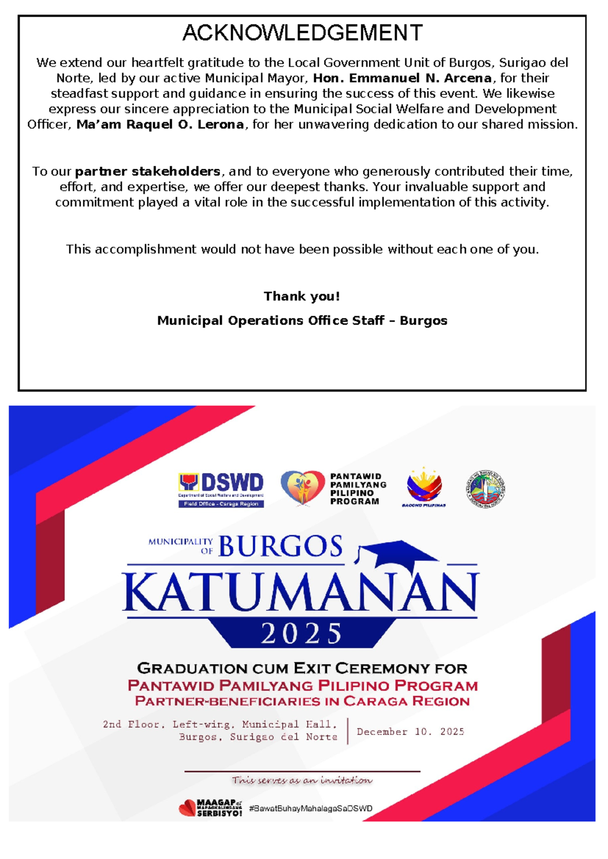 Acknowledgement for Katumanan 2025 Program Event - Studocu