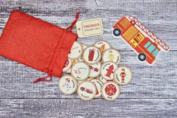 Firefighter Wooden Matching Memory Game Busy Bag Travel | Etsy