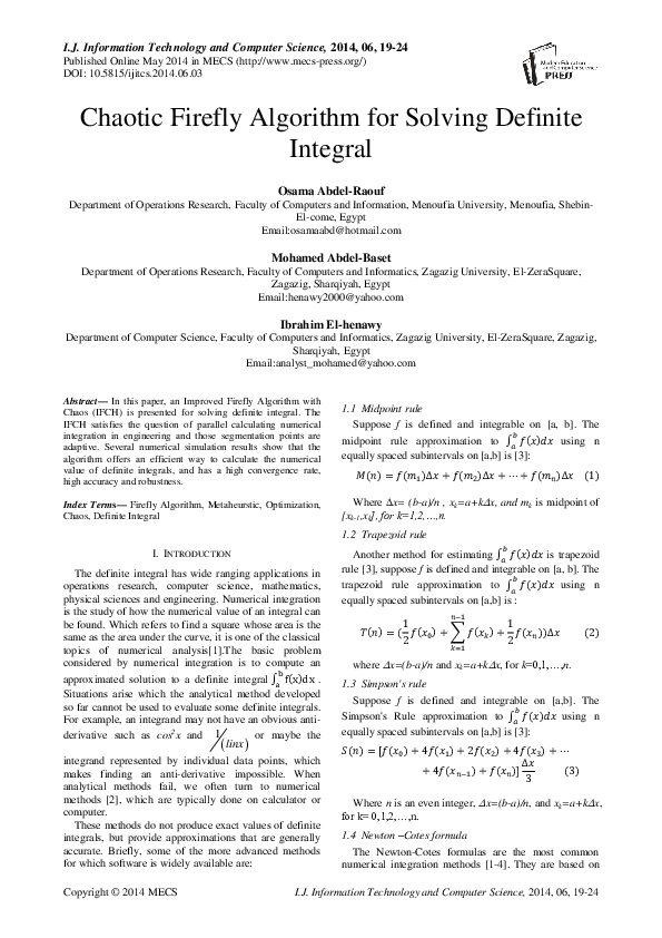 (PDF) Chaotic Firefly Algorithm for Solving Definite Integral
