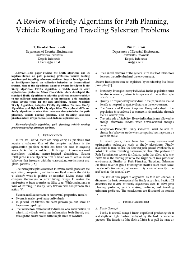 (PDF) A Review of Firefly Algorithms for Path Planning, Vehicle Routing ...