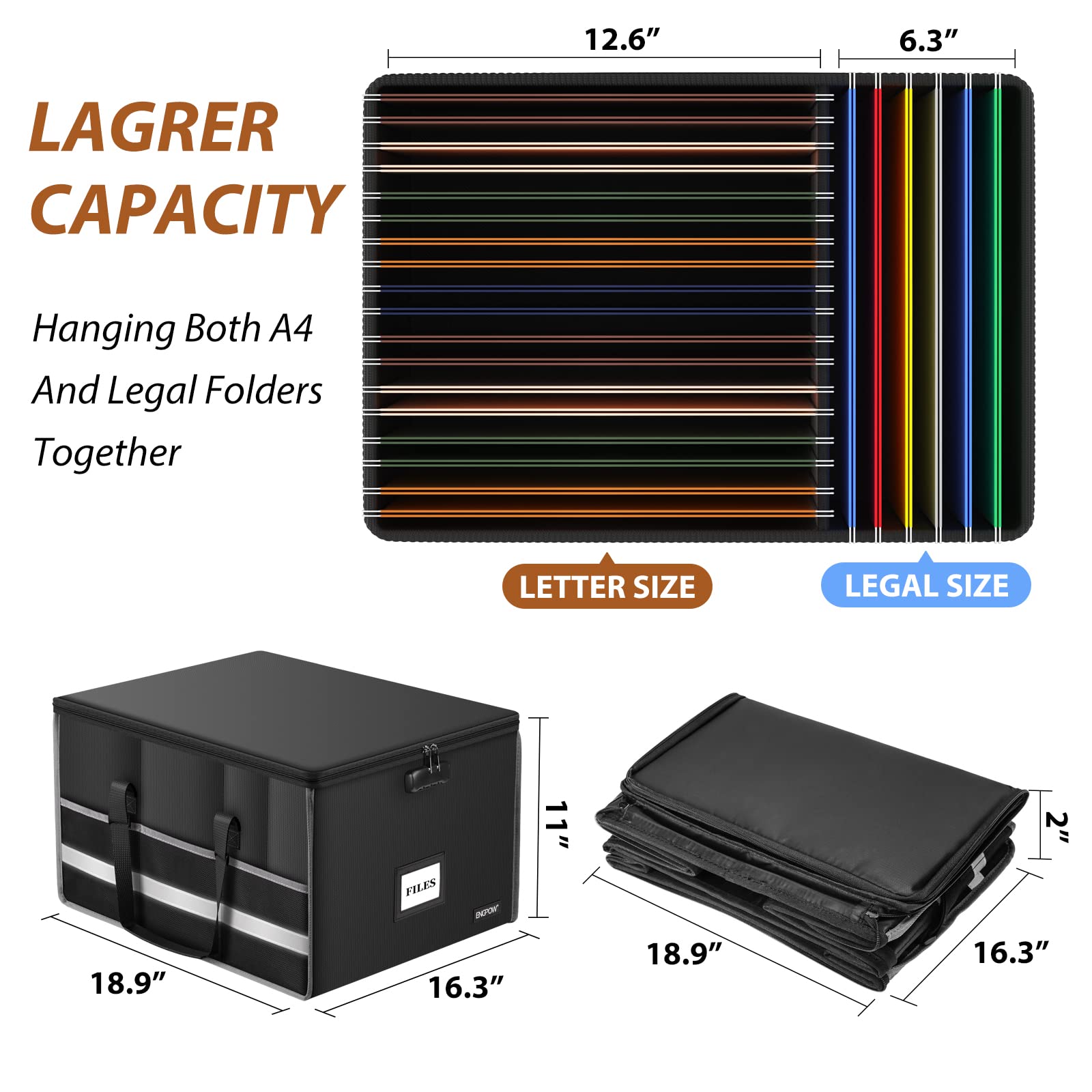 Lockable Fireproof File Box Foldable Rolling File Storage Organizer ...
