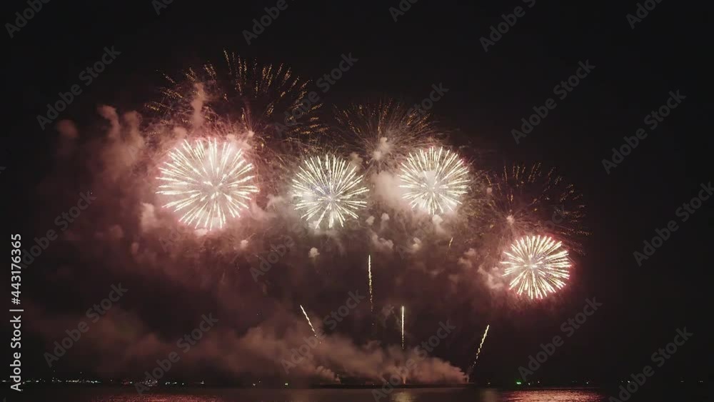 Colorful Fireworks Lighting Up Night Sky over Waterfront