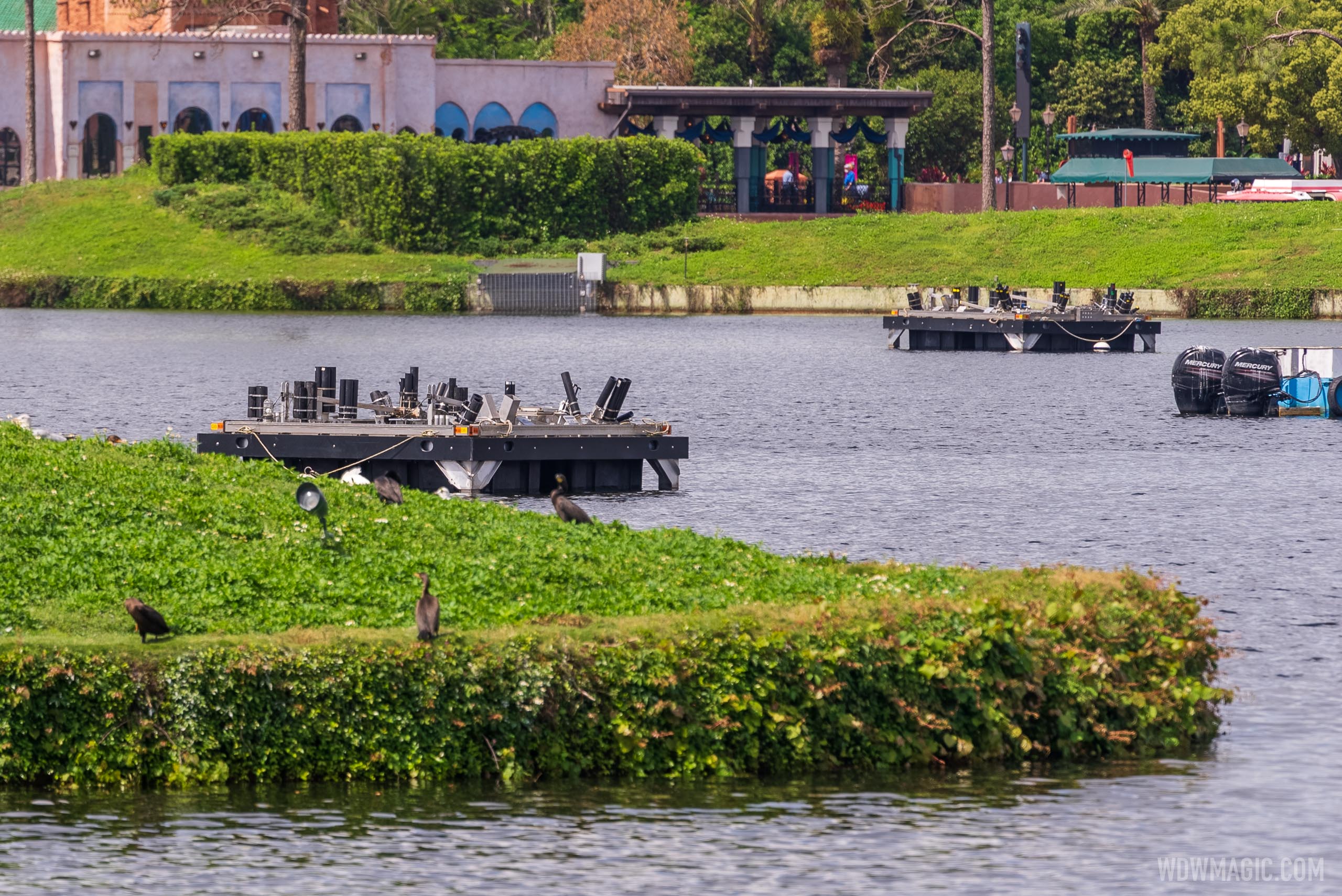 Firework platforms in place in World Showcase Lagoon as Harmonious ...
