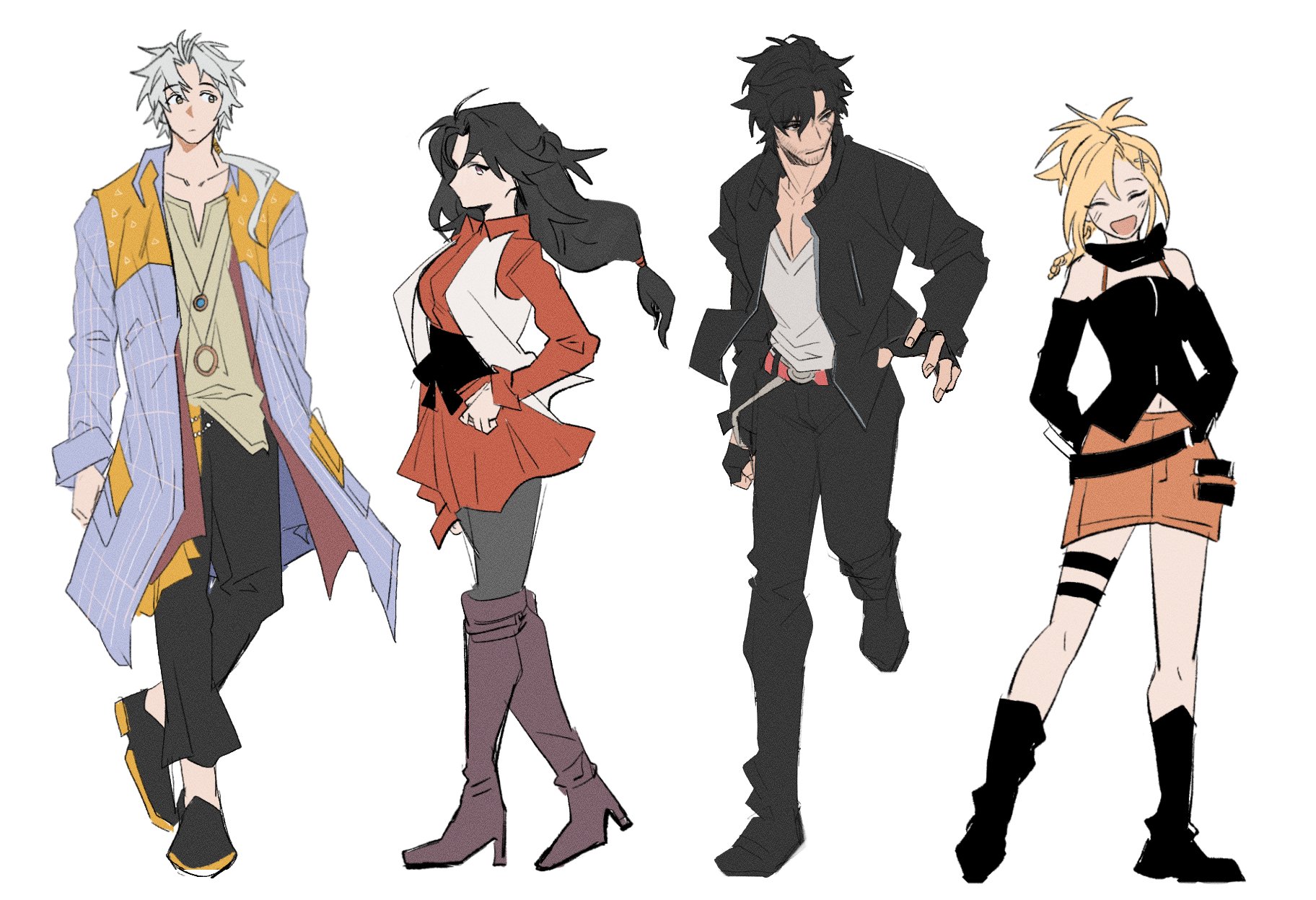 Safebooru - 2boys 2girls belt black hair black jacket blonde hair boots ...