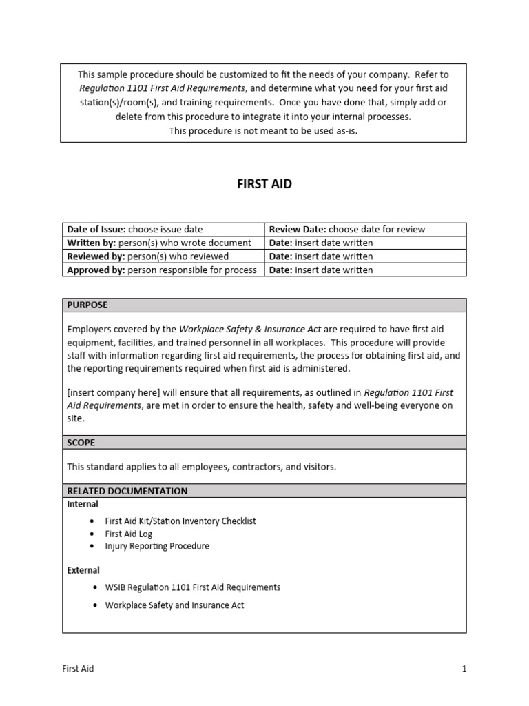 First Aid Procedures Template at Hudson Facy blog