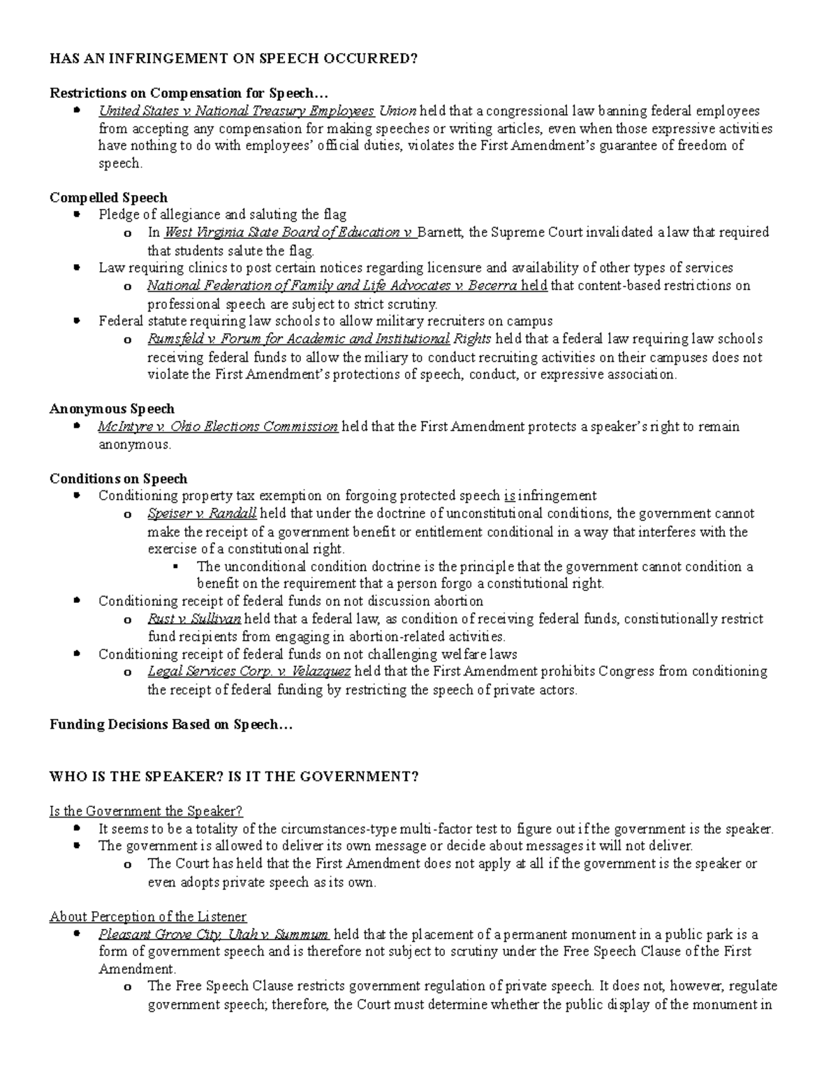 First Amendment Outline - HAS AN INFRINGEMENT ON SPEECH OCCURRED ...