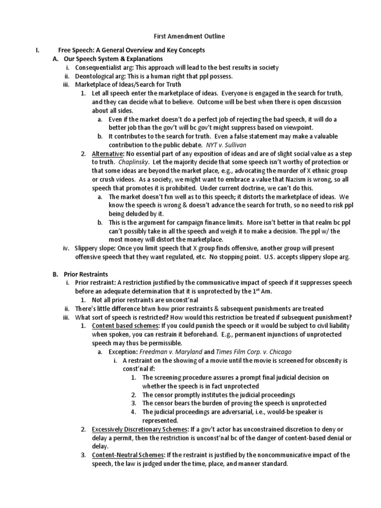 First Amendment Outline - Freedom of Speech.docx - First Amendment ...