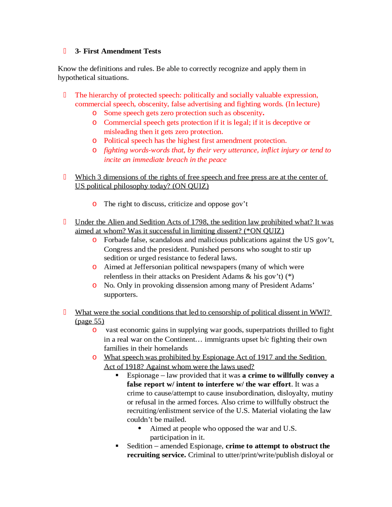 Media and Law: 3-First Amendment Tests - Study Guide | MC 4163 - Docsity