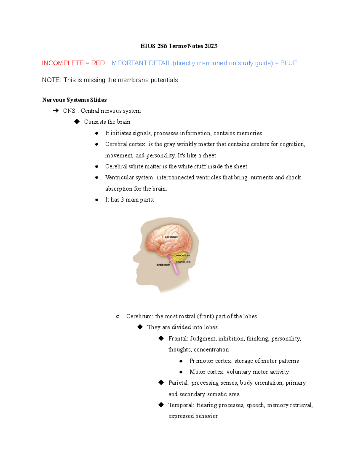 BIOS 286 Exam 1 - Notes/summary of 2/3 (due to rushing) topics covered ...