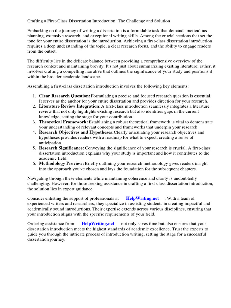First Class Dissertation Introduction | PDF | Thesis | Methodology