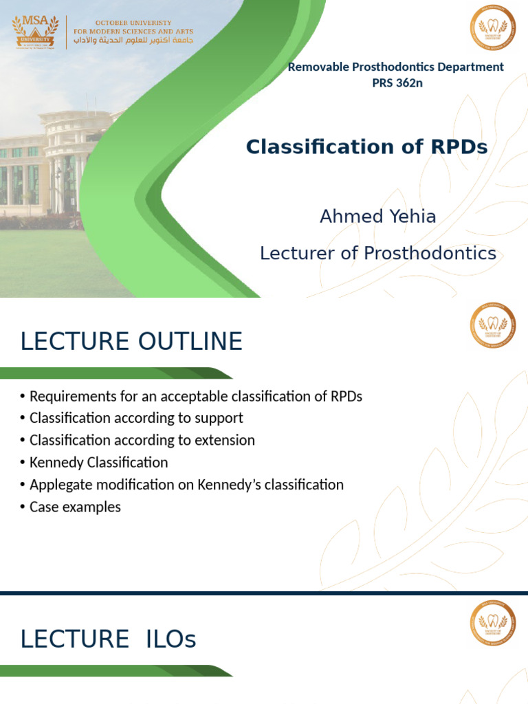 Classification of RPD Lecture 1 | PDF | Dentures | Dentistry