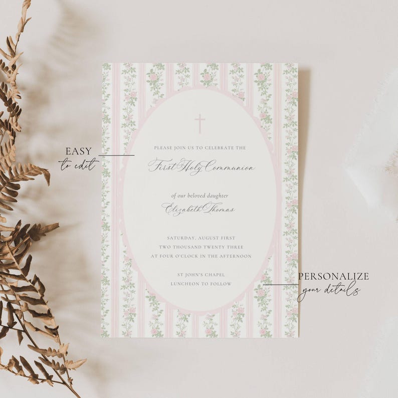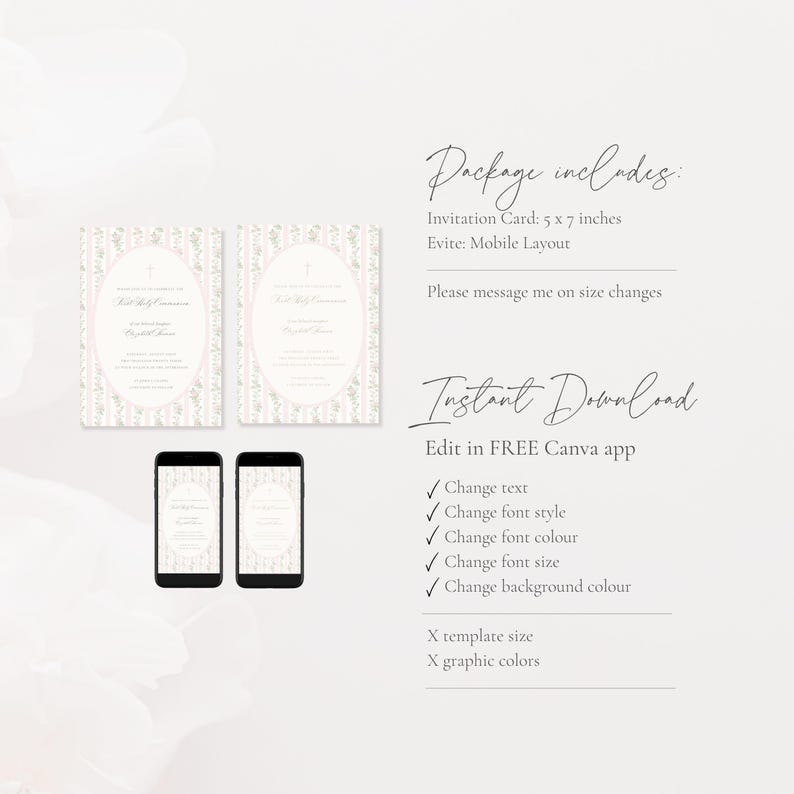 First Holy Communion Invitation Template, Canva Editable Printable ...