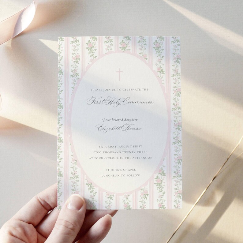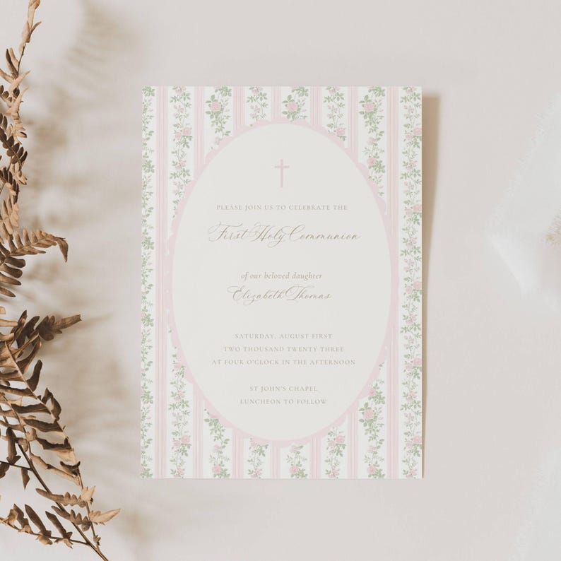 First Holy Communion Invitation Pink Florals: Vintage Flowers ...
